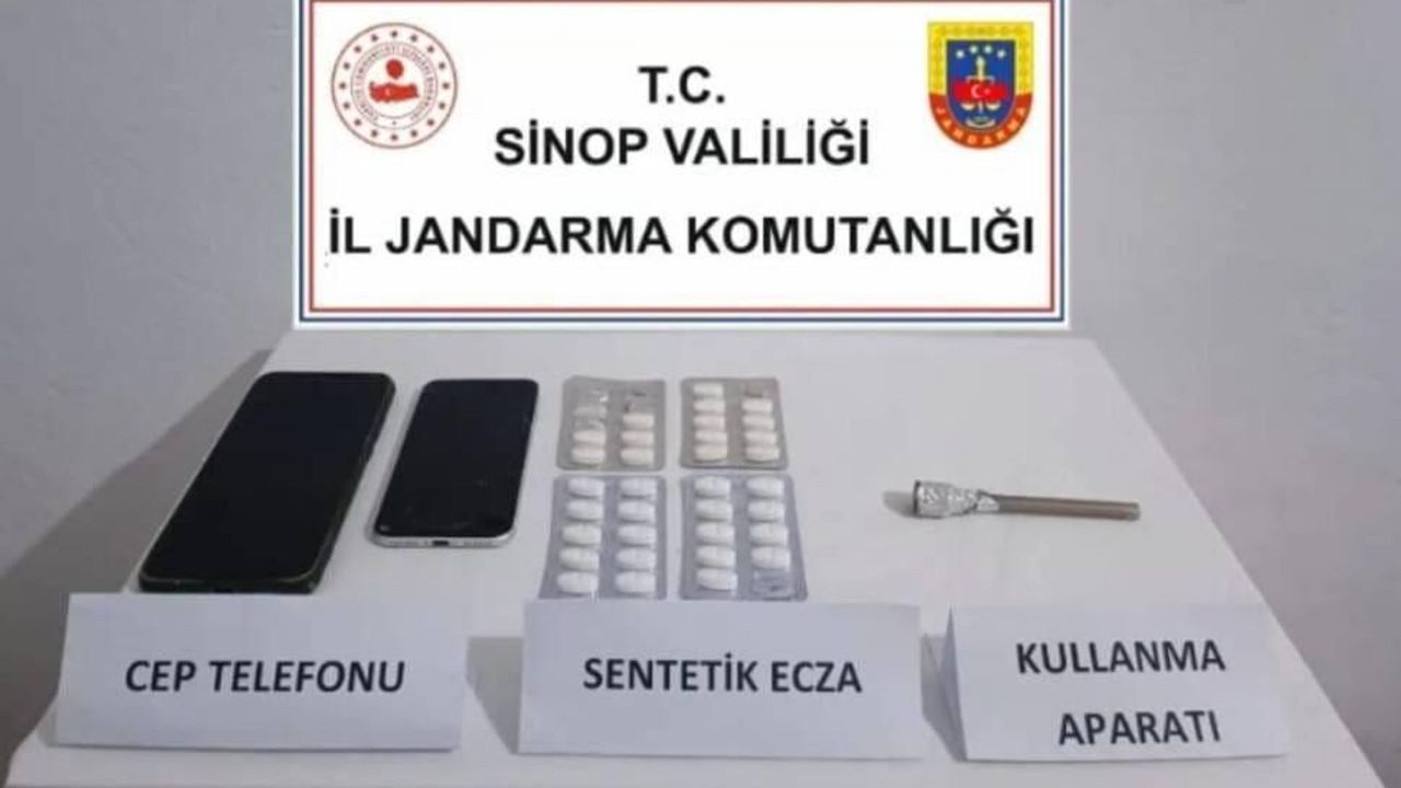 Sinop İl Jandarma Komutanlığı ekiplerince uyuşturucu madde kullanan şahıslara yönelik yapılan araştırmalar neticesinde, Boyabat ilçesinde durdurulan araçta ve sürücüsü üzerinde yapılan aramada 33 adet sentetik hap ve 1 adet uyuşturucu ve uyarıcı madde kullanma aparatı ele geçirildi, 2 şüpheli şahıs yakalanarak haklarında adli işlemlere başlanıldı.