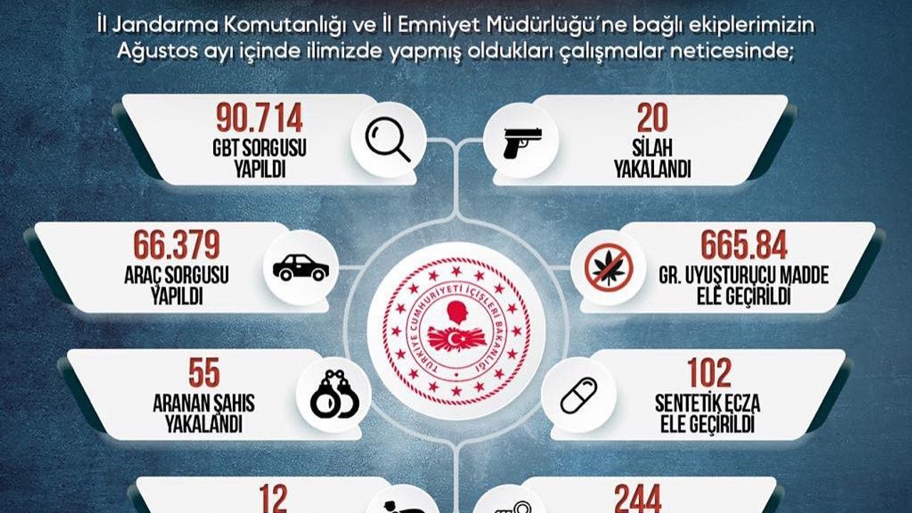 Sinop Valiliği, İl Emniyet Müdürlüğü ve İl Jandarma Komutanlığı’nın ağustos ayına ait güvenlik ve denetim faaliyetlerini kamuoyu ile paylaştı.