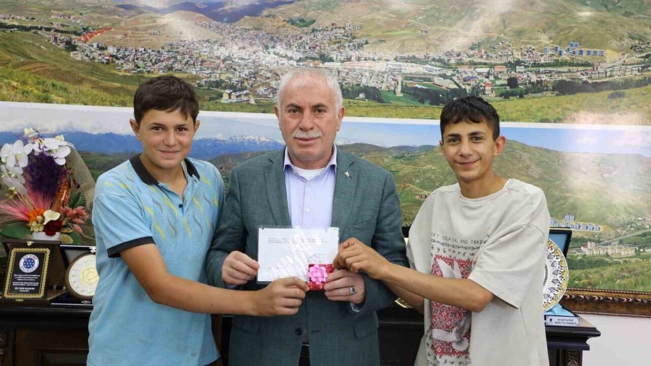 İkramiyelerini Bayburt Belediye Başkanı Mete Memiş’in elinden alan gençler, yaşadıkları sevinci paylaştı. Başkan Memiş, kardeşleri tebrik ederek, ödüllerini takdim etti.