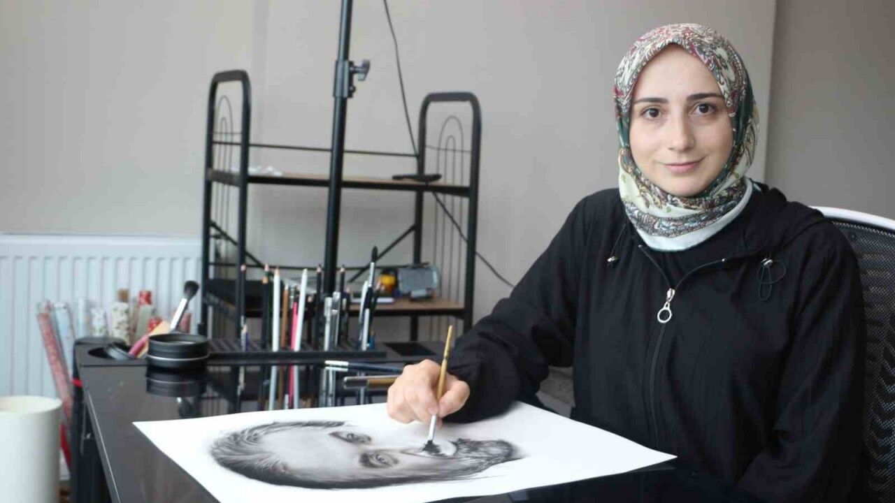 Rize’de yaşayan kadın ressam hiçbir teknik bilgi sahibi olmadan sadece hayal gücüyle yaptığı portrelerle hayran bırakıyor.