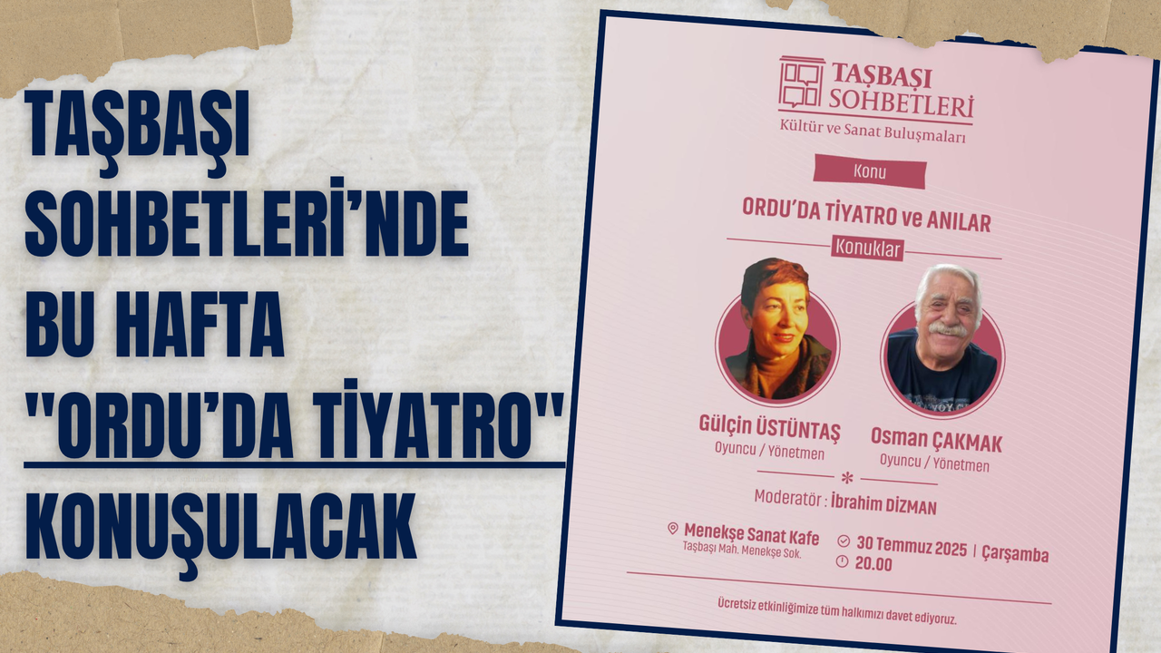 Altınordu Belediyesi, her hafta farklı bir konunun masaya yatırıldığı ‘Taşbaşı Sohbetleri’ serisinde bu hafta Oyuncu/Yönetmen Gülçin Üstüntaş ile Osman Çakmak’ı ağırlayacak. 30 Temmuz Çarşamba günü Menekşe Sanat Kafe’de saat 20.00’de düzenlenecek olan söyleşide ‘Ordu’da Tiyatro ve Anılar’ konuşulacak.