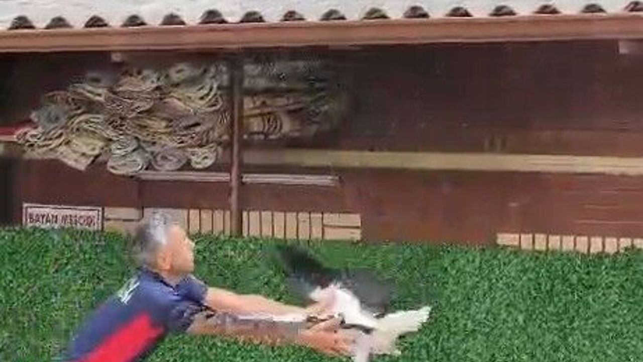 Tokat’ın Erbaa ilçesinde verandadan düşen tek ayaklı leyleği havada yakalayan itfaiye eri refleksi ile dikkat çekti.