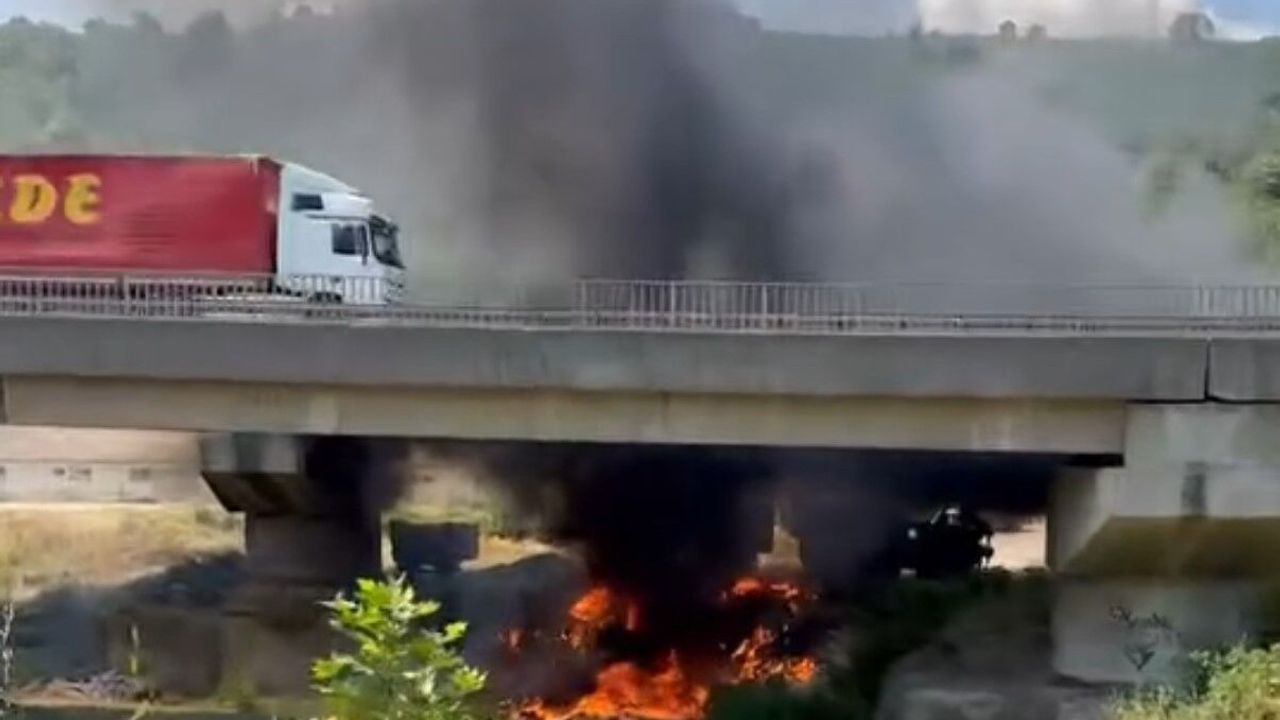 TEM Otoyolu’nun Düzce geçişinde köprü altında yakılan ateş, yolda ilerleyen sürücüleri tedirgin etti.