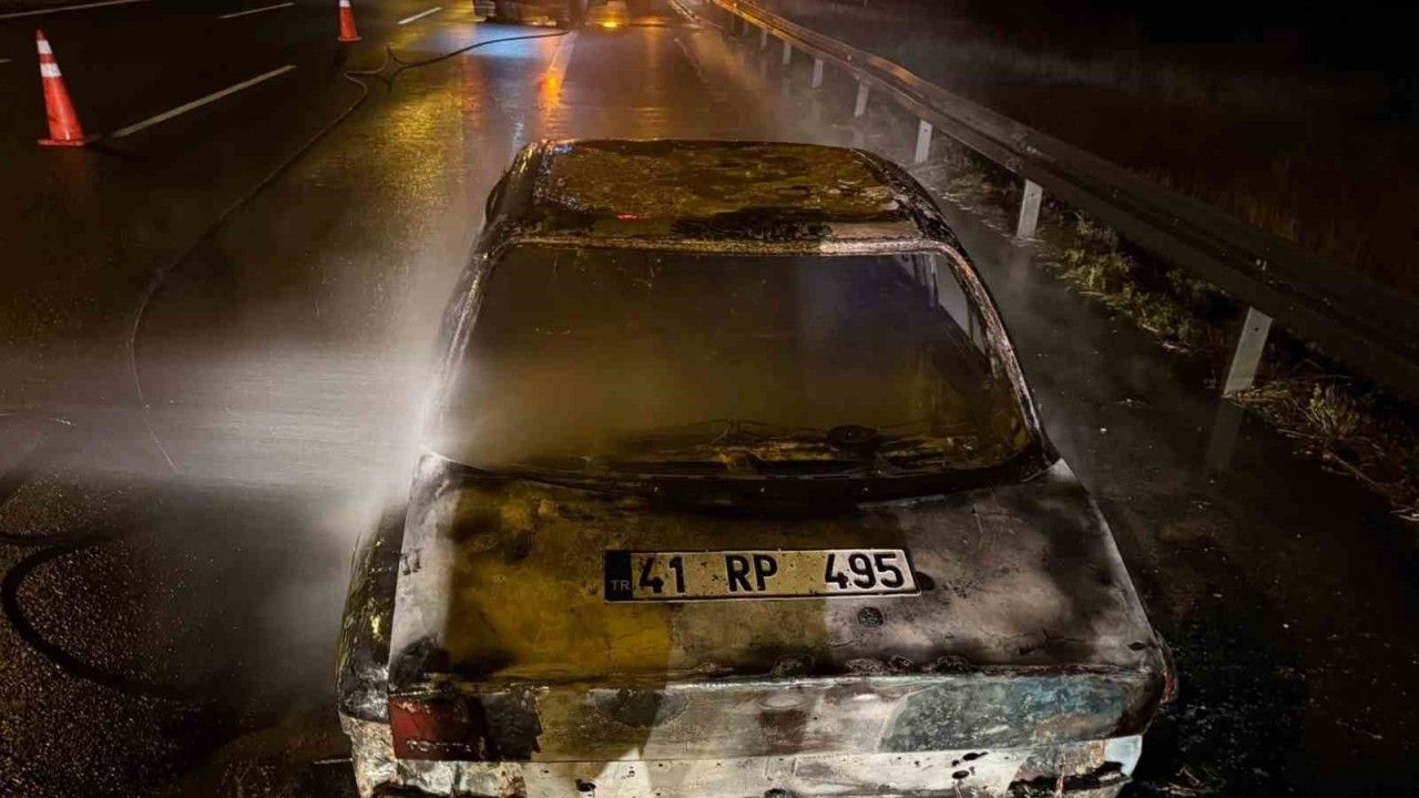 TEM Otoyolu’nun Bolu geçişinde Dörtdivan ilçesinde seyir halindeki otomobil alev alev yanarak küle döndü.