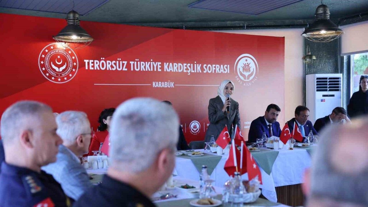 Aile ve Sosyal Hizmetler Bakanı Mahinur Özdemir Göktaş, ‘Terörsüz Türkiye Kardeşlik Sofrası’ buluşmasında şehit ailelerinin terörsüz Türkiye sürecinin mimarı olduğunu belirterek, "Bu süreçte herhangi bir pazarlık, şehitlerimizin emanetine, aziz hatıralarına gölge düşürecek hiçbir konunun gündeme gelmediğini ve bizlerin buna asla fırsat vermeyeceğimizi özellikle ifade etmek istiyorum" dedi.