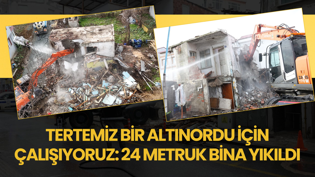 Kent estetiğini bozan ve halk güvenliğini tehdit eden metruk yapılarla mücadelesini aralıksız bir şekilde sürdüren Altınordu Belediyesi, uzun yıllardır boş olan 5 mahalledeki 6 metruk binanın daha yıkımını gerçekleştirdi. Bugüne kadar kent genelinde yıkımı gerçekleştirilen metruk bina sayısı son yıkımlarla birlikte 24’e yükseldi.