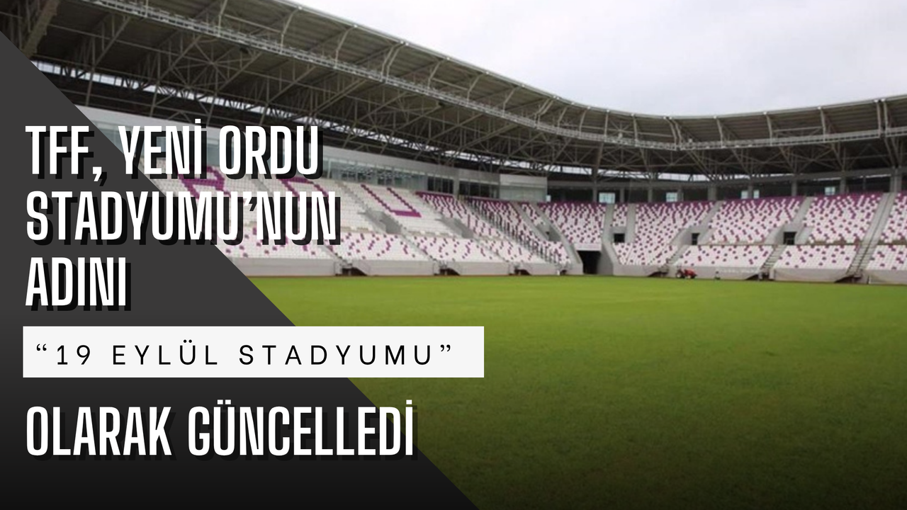 Türkiye Futbol Federasyonu (TFF), Ordu’da bulunan Yeni Ordu Stadyumu’nun adını resmi olarak “19 Eylül Stadyumu” olarak değiştirdi. Gençlik ve Spor Bakanı Osman Aşkın Bak’ın onayıyla yapılan isim değişikliği, TFF’nin resmi internet sitesine de yansıdı.