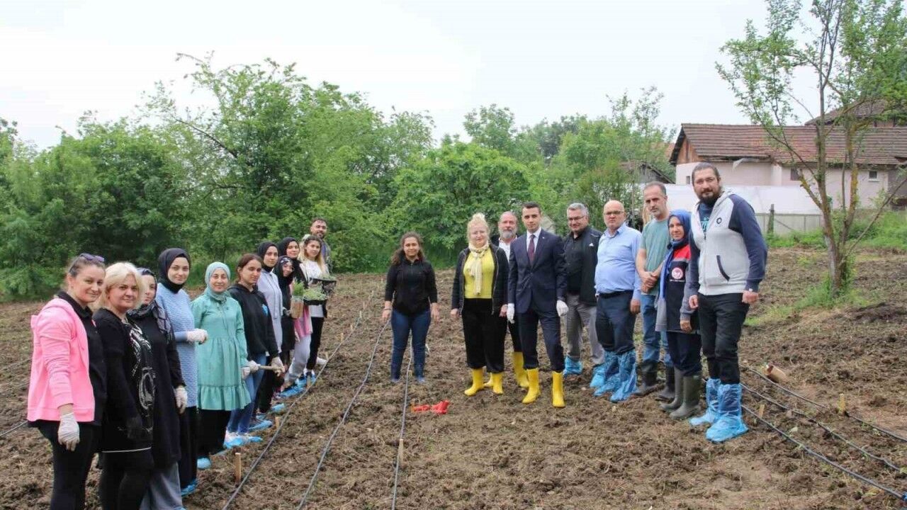 DÜZCE(İHA) – Çilimli Kaymakamı Furkan Alpay, öğrencilerle birlikte örnek uygulama bahçesine tıbbi ve aromatik özelliği olan fidelerin dikimini yaptı.