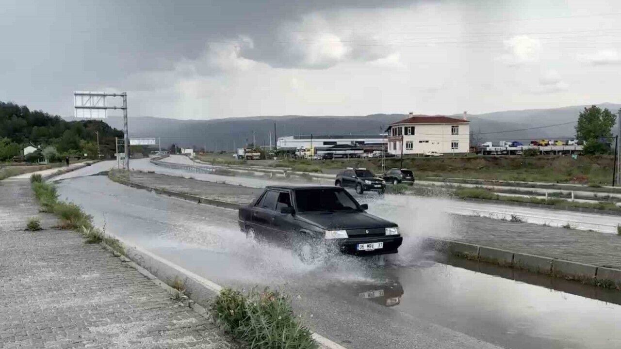Kastamonu’nun Tosya ilçesinde etkili olan kuvvetli sağanak yağışı sebebiyle bazı yollarda oluşan su birikintisi sürücülere zor anlar yaşattı.