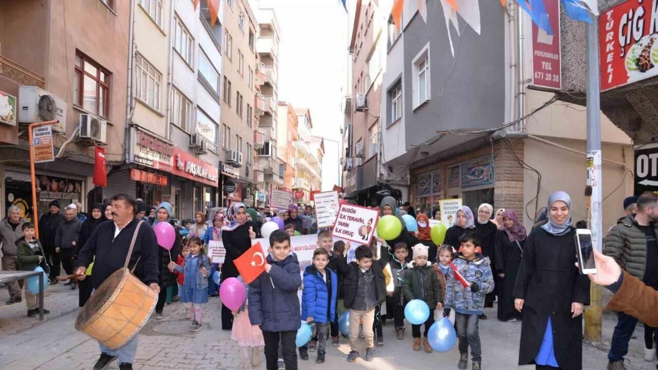 Yürüyüşe İlçe Kaymakamı Safa Kahraman, İlçe Müftüsü Halil İbrahim Kömürcü, siyasi parti temsilcileri, sivil toplum kuruluşları temsilcileri, çok sayıda vatandaş ile çocuklar katıldı.