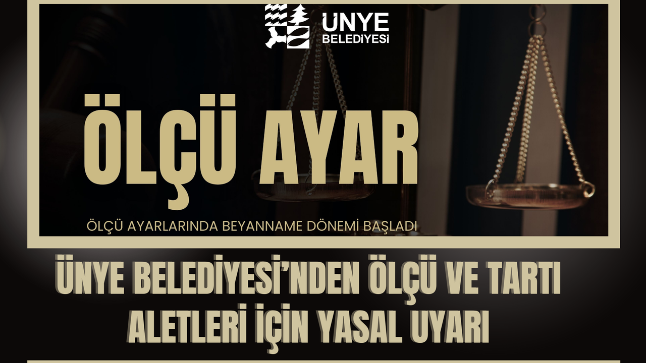 Ünye Belediyesi, ticari faaliyetlerde kullanılan ölçü ve tartı aletlerinin muayene ve damgalama işlemlerinin yasal zorunluluk olduğunu hatırlatarak esnaf ve mükelleflere uyarıda bulundu. 1 Ocak 2026 tarihinde başlayan beyanname sürecinin, 28 Şubat 2026 Cumartesi günü sona ereceği bildirildi.