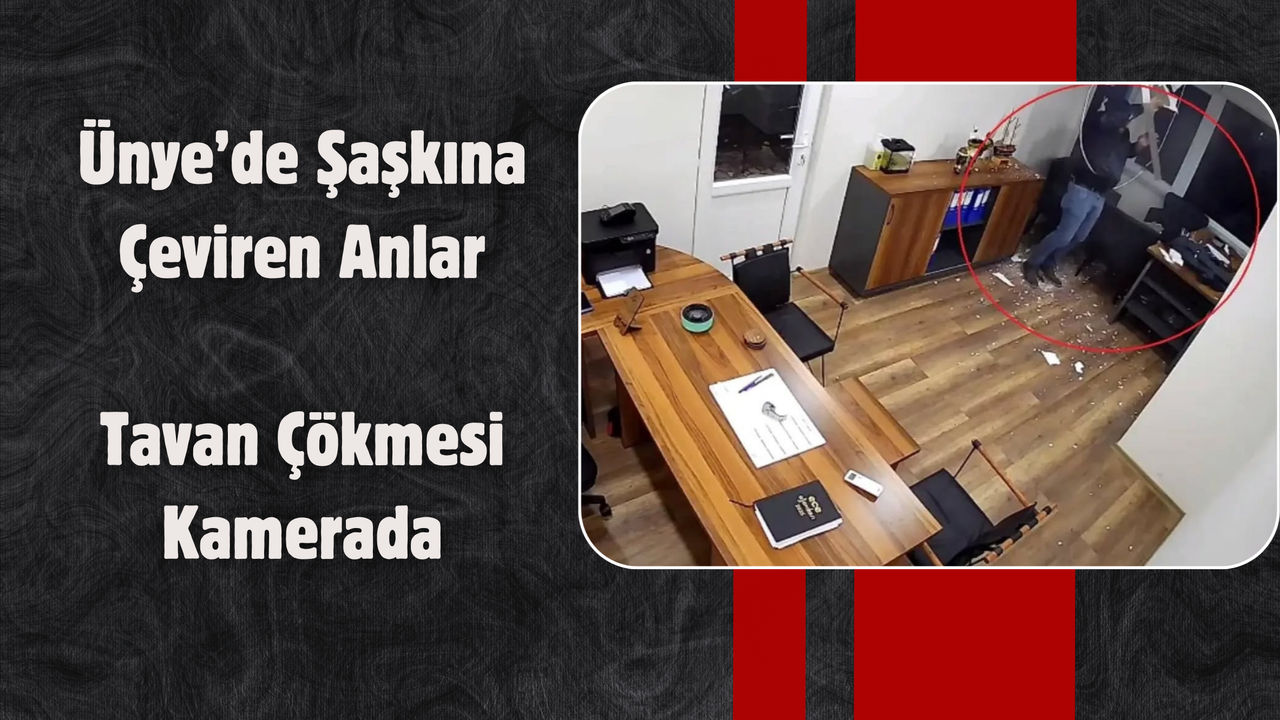 Ordu’nun Ünye ilçesinde tadilat yapılan bir iş yerini ziyaret eden vatandaş, dalgınlıkla tavan kartonpiyerine basınca asma kattan alt kattaki ofise düştü. O anlar iş yerinin güvenlik kameralarına saniye saniye yansıdı.