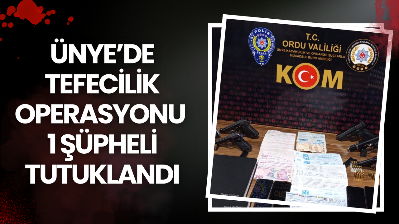 Ordu’nun Ünye ilçesinde yürütülen tefecilik soruşturması kapsamında düzenlenen eş zamanlı operasyonda çok sayıda silah, para ve senet ele geçirildi. Gözaltına alınan dört şüpheliden biri tutuklandı.