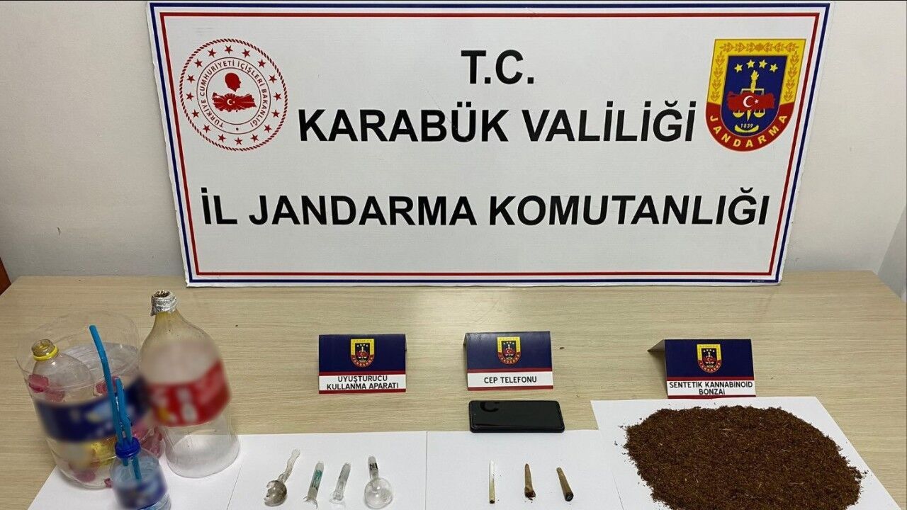 Karabük’te jandarma ekiplerinin düzenlediği uyuşturucu operasyonunda 2 kişi yakalanırken çeşitli miktarlarda sentetik uyuşturucu madde ve kullanım aparatı ele geçirildi.