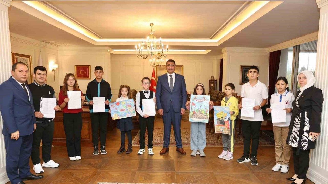 DÜZCE(İHA) – Düzce valisi Selçuk Aslan, Cumhuriyet Bayramı yarışmalarında dereceye giren öğrencileri ağırladı.