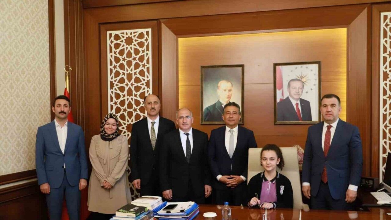 Bayburt Valisi Mustafa Eldivan, 23 Nisan Ulusal Egemenlik ve Çocuk Bayramı etkinlikleri kapsamında, koltuğunu temsili olarak 6’ncı sınıf öğrencisi Dilanaz Emir’e devretti.