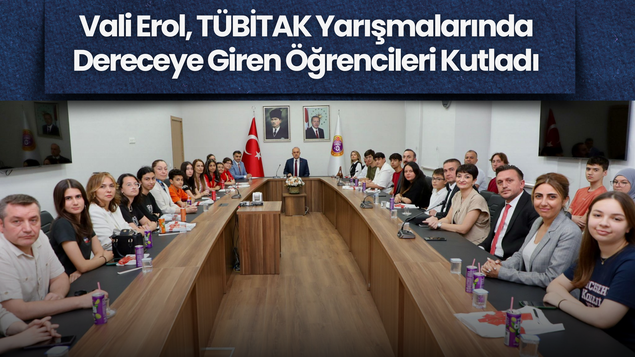 Vali Muammer Erol, TÜBİTAK 2204-A Lise Öğrencileri Araştırma Projeleri Yarışması ile TÜBİTAK 2204-B Ortaokul Öğrencileri Araştırma Projeleri Yarışmasında dereceye giren öğrencileri kabul ederek, tebrik etti.
