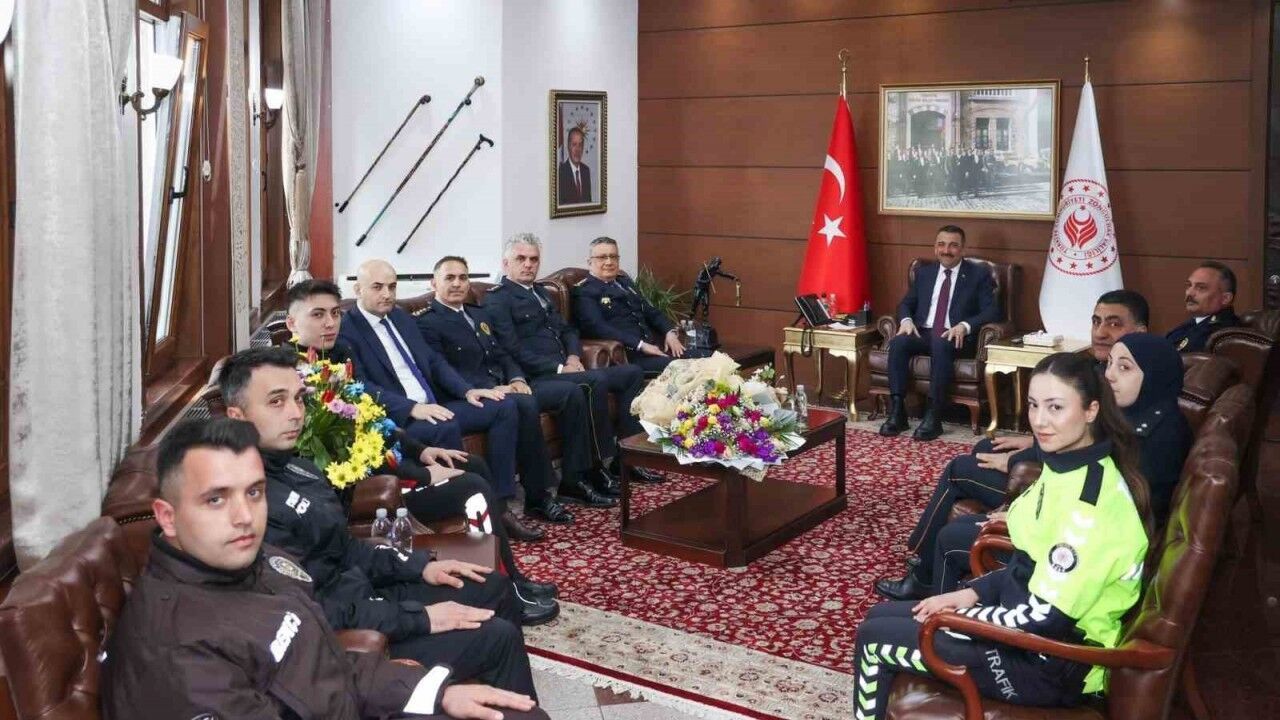 Zonguldak Valisi Osman Hacıbektaşoğlu, Türk Polis Teşkilatı’nın 180. kuruluş yıl dönümü dolayısıyla İl Emniyet Müdürü Sinan Ergen ile beraberindeki emniyet personelini makamında kabul etti.