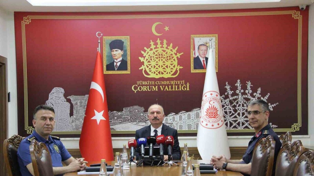 Çorum Valiliğinde düzenlenen toplantıda Vali Ali Çalgan Mayıs ayı asayiş ve güvenlik konuları ile ilgili açıklamalarda bulundu. İl Emniyet Müdürü Arif Pehlivan ve İl Jandarma Komutanı Jandarma Albay Naim Çetinkaya’nın da hazır bulunduğu toplantıda uyarılarda bulunan Vali Çalgan, yaz mevsimi ile birlikte görülmeye başlayan Kırım Kongo Kanamalı Ateşi vakaları ile ilgili vatandaşların dikkatli olmasını istedi.