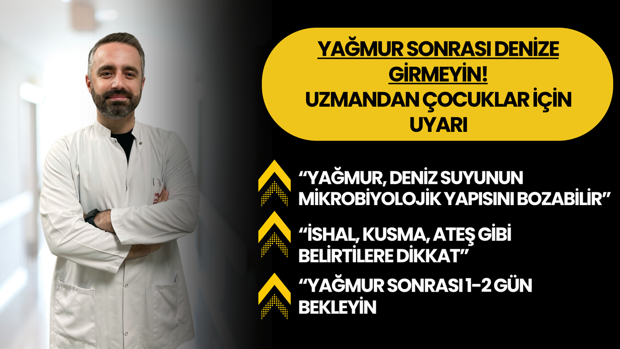 Özellikle sağanak yağışların ardından denize girilmesinin, çeşitli sağlık risklerini de beraberinde getirdiğini belirten Çocuk Sağlığı ve Hastalıkları Uzmanı Dr. Emre Öztürk, “Yoğun yağışların ardından dere, kanalizasyon ya da yüzey suları denizle buluşur. Bu sular, çeşitli mikroorganizmalar, bakteriler ve hatta parazitlerle yüklü olabilir. Yağmurla birlikte bu kirli akıntılar denize karıştığında, özellikle kıyı kesimlerindeki su kalitesi ciddi oranda bozulur. Bu da, çocuklarda mide-bağırsak enfeksiyonlarından kulak iltihabına, cilt döküntülerinden göz enfeksiyonlarına kadar birçok sağlık sorununa yol açabilir” dedi.