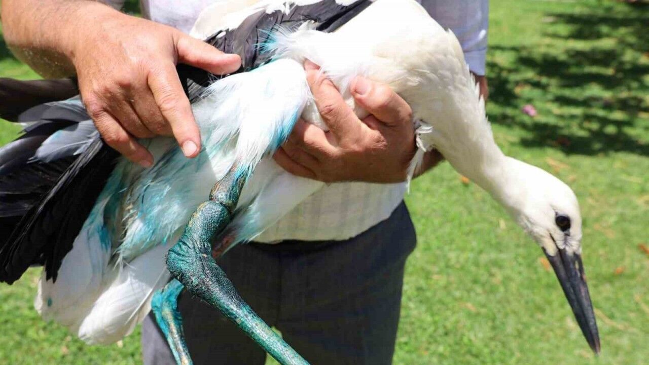 Yaralı leylek, Doğa Koruma ve Milli Parklar Müdürlüğü ekiplerine teslim edilecek.