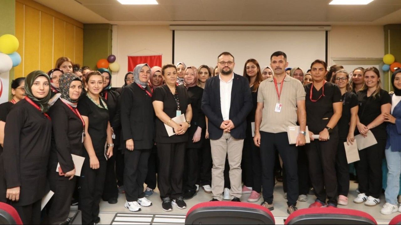 Personeline seslenen Başhekim Sezgin, "Unutmayınız ki hastalarımızın, hastaneye adım attığı andan itibaren ilk karşılaştığı yüzler sizlersiniz. Onların endişelerine ortak olmak, güler yüzle ve anlayışla yaklaşmak, tedavi süreçlerinin ilk ve en önemli adımıdır" dedi.