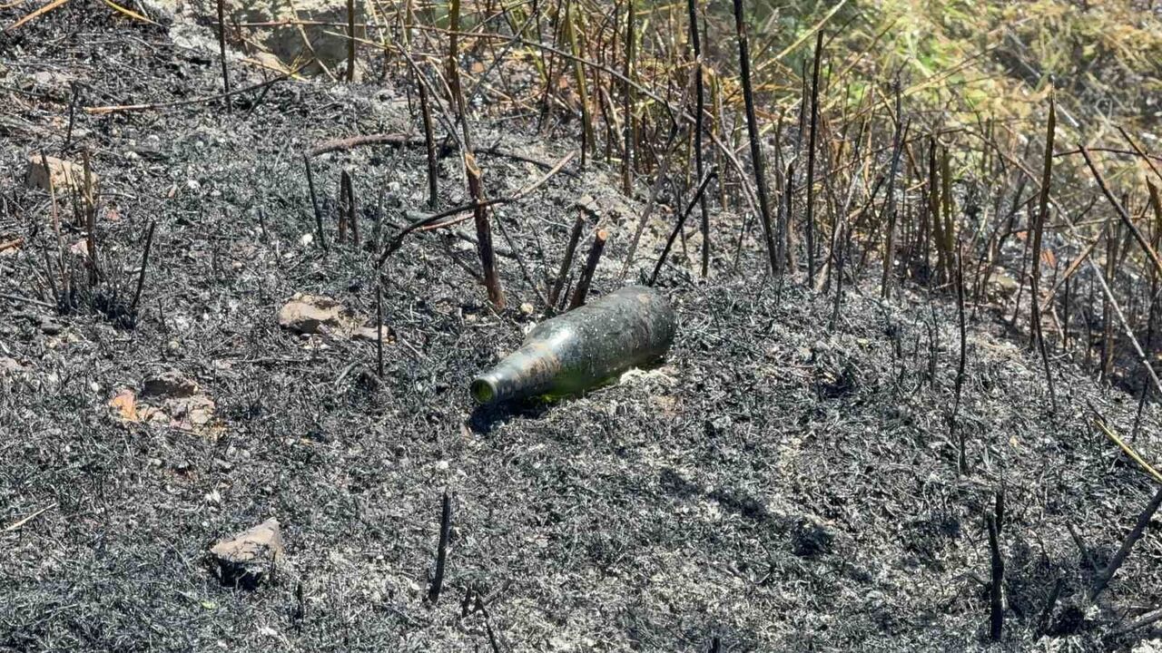 Düzce’de yol kenarına atılan cam şişeler anız yangını çıkarttı. Yangında 2 ceviz ağacı zarar gördü.