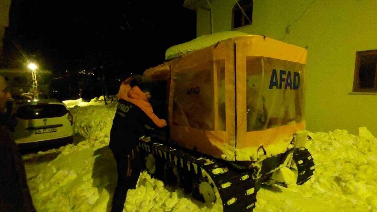 Kastamonu’nun Cide ilçesinde yolu kapanan köyde hastalanan kadın, paletli kar aracı sayesinde hastaneye ulaştırıldı.