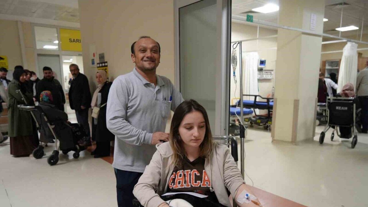 Zehirlenme şüphesiyle hastaneye giden öğrencilerden Beyzanur Kar, “Yediğimiz tavuktan dolayı zehirlendik. Akşam yemeğinde tavuk tantuni vermişlerdi bizlere, onu yedikten sonra zehirlendik. Akşam yemeğinde yemiştik fakat belirtileri sabah saatlerinde olmaya başladı. İshal, kusma, mide bulantısı şikayetlerimiz oluştu. Bu şikayetler oluşunca ambulansı aradık ve hastaneye tedavi olmaya geldik. Şu ana kadar 60-65 civarında arkadaşım hastaneye kaldırıldı. Bugün sınavım vardı, tedavim tamamlanırsa sınava yetişmeye çalışıyorum” dedi.