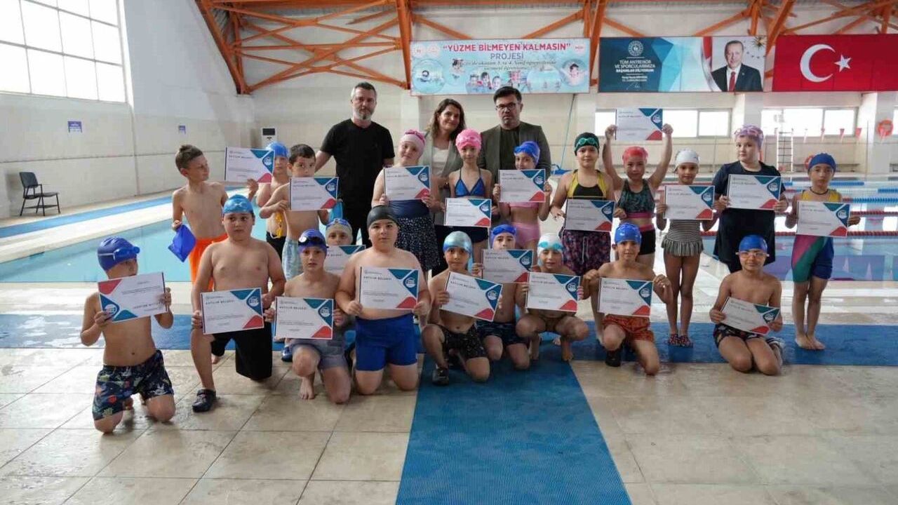 DÜZCE(İHA) – Düzce’de 16 ders yüzme eğitimi alan ve yüzme testini geçen öğrencilere katılım belgeleri verildi.