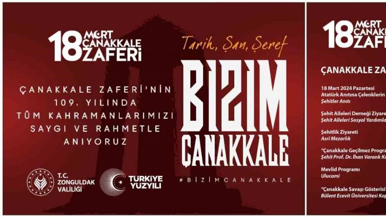 Zonguldak’ta Çanakkale Zaferi’nin 109. yıldönümü dolayısıyla anma programı düzenlenecek.