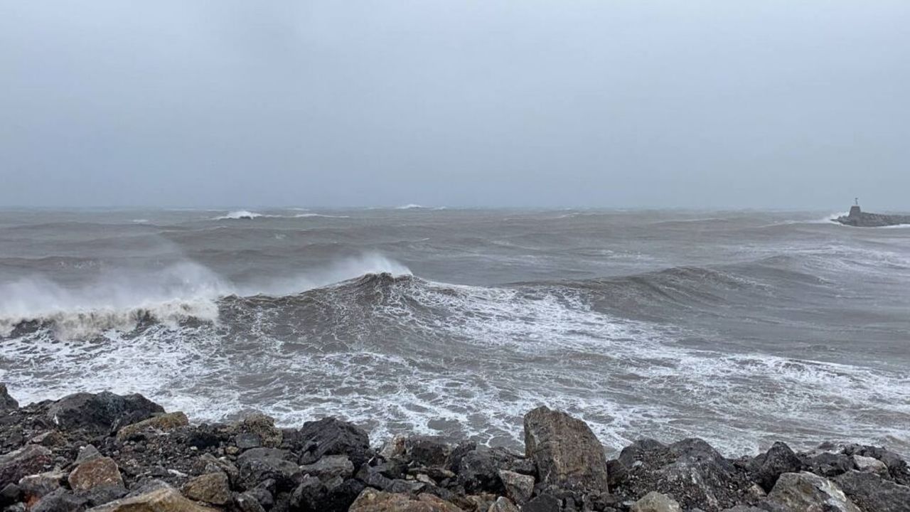 Sahil kesiminde ise dalga boyunun yükselmesinin ardından kumsal sular altında kaldı.