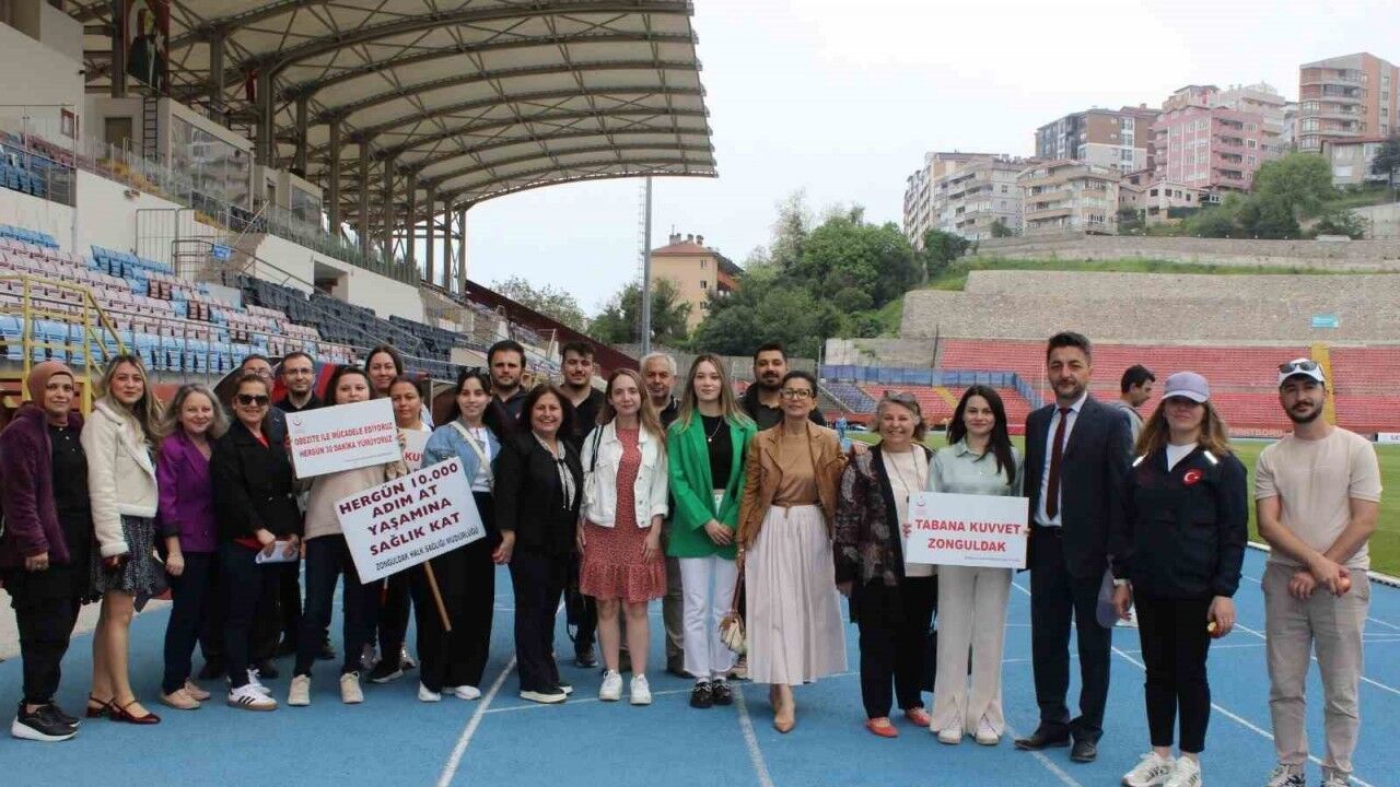 Zonguldak Kemal Köksal Stadyumu’nda bir araya gelen sağlık çalışanları ve öğrenciler spor antrenörleri önderliğinde yapılan ısınma hareketleri sonrasında ellerinde pankartlarla alan içinde yaklaşık 40 dakikalık bir yürüyüş gerçekleştirdi. Düzenlenen yürüyüşün ardından bir konuşma yapan İl Sağlık Müdürü Uzm. Dr. Ertuğrul Güner fiziksel aktif olmanın ve düzenli sağlık kontrolleri yaptırmanın önemine dikkat çekerek şöyle dedi: